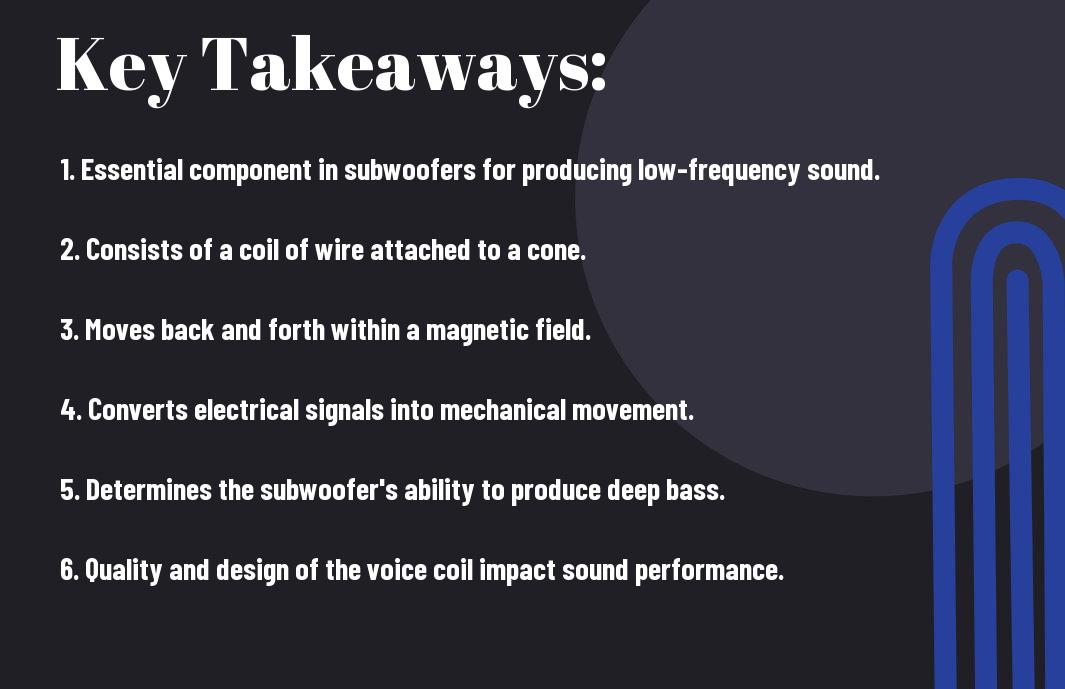 - Voice coil is a critical component of a subwoofer that produces sound by interacting with the speaker’s magnetic field.