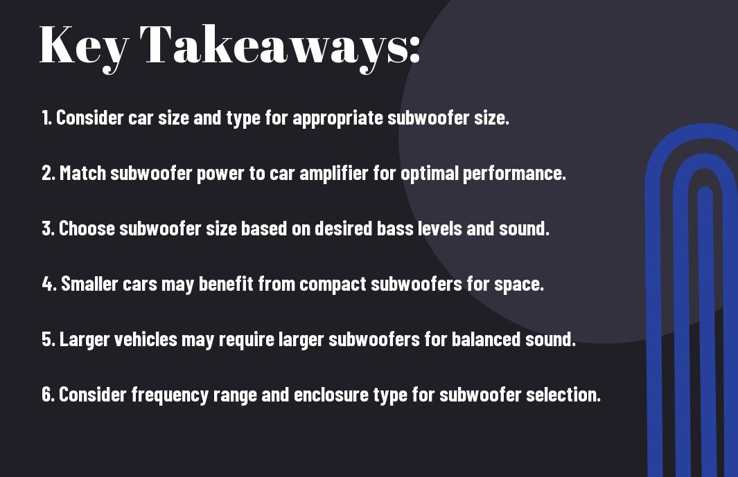 Q: What factors should I consider when choosing the size of a subwoofer for my car?